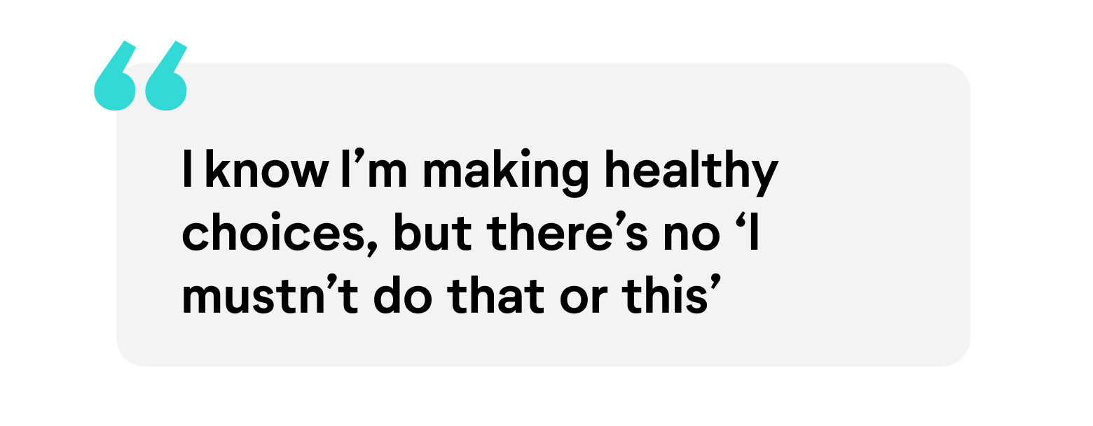 The programme set me on the right path mentally and lifestyle-wise. I’ve stopped the treatment but the weight has not come back. Amy was honest about the potential weight regain after stopping and being prepared for that did help. I do get days where I binge but because of what I‘ve learned I’m not hard on myself like I used to be. I’m allowed a day off and I can’t punish myself. We’re not robots.