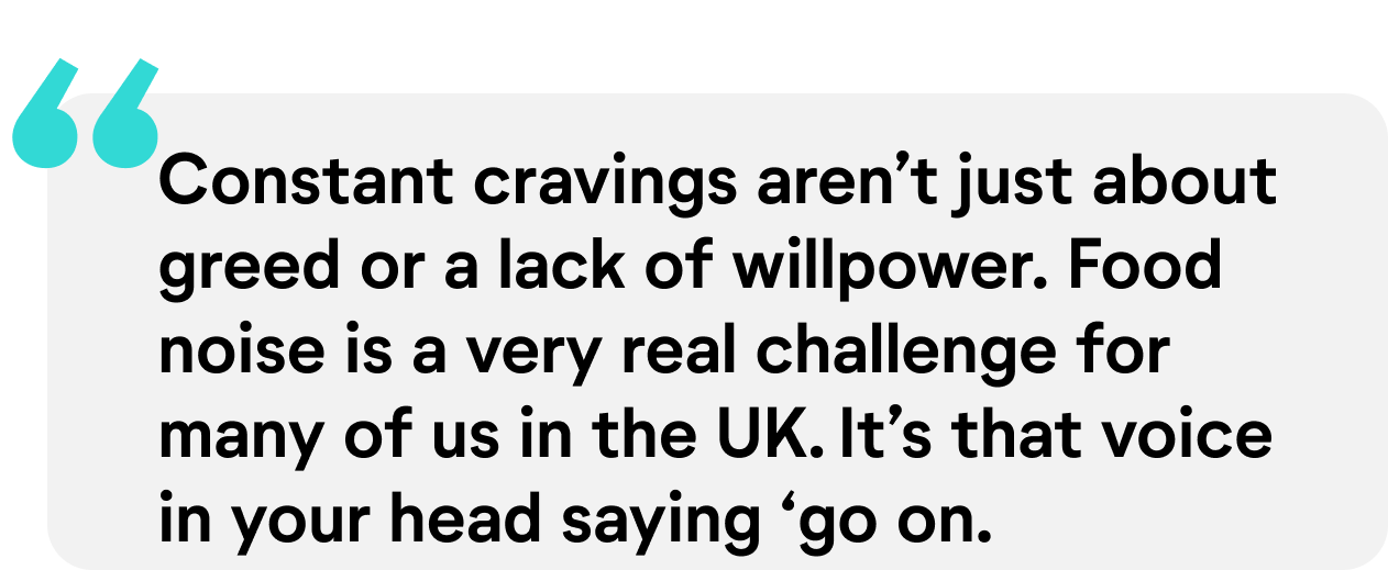 In our survey, just 25% of people had heard the term ‘food noise’ before, but once we explained it, a huge 84% recognised the feeling. For some, it’s an occasional distraction; for others, it’s like a soundtrack playing in the background of their mind all day.