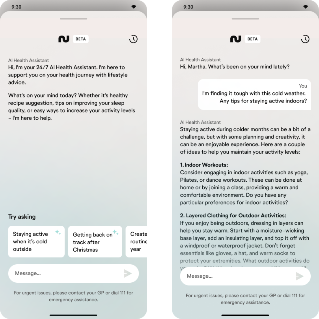 And while there’s a long way to go - our AI Health Assistant is the first step towards achieving this. It will enable us to scale personalised care, making these solutions accessible to a broader population. Our AI Health Assistant embodies this approach by guiding patients through their health journeys with tailored, 24/7 support.
