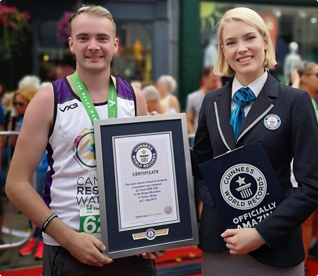 Seb: "A few years ago, 122 of us were linked together with climbing ropes and carabiners to set a world record for the most people linked together to complete a marathon. We ran as a big snake."
